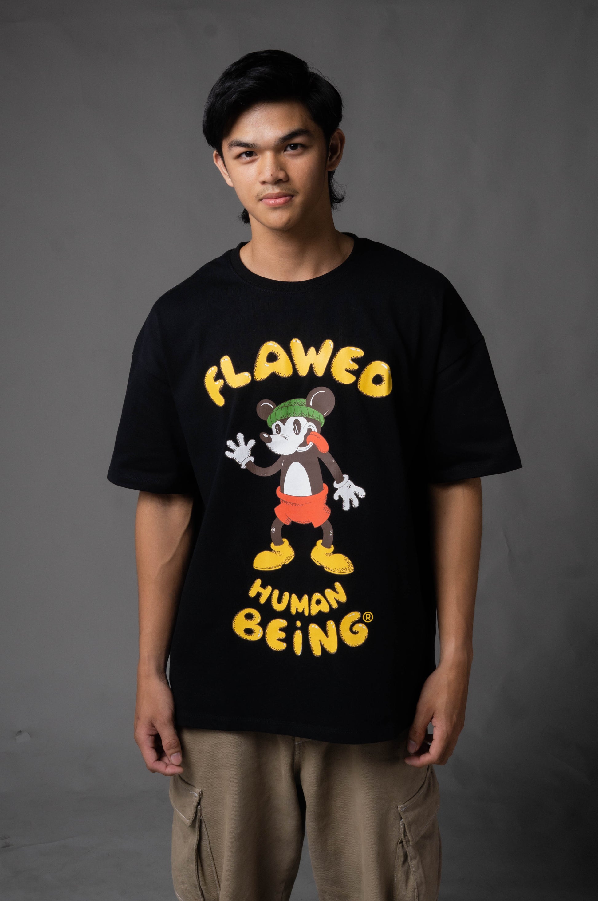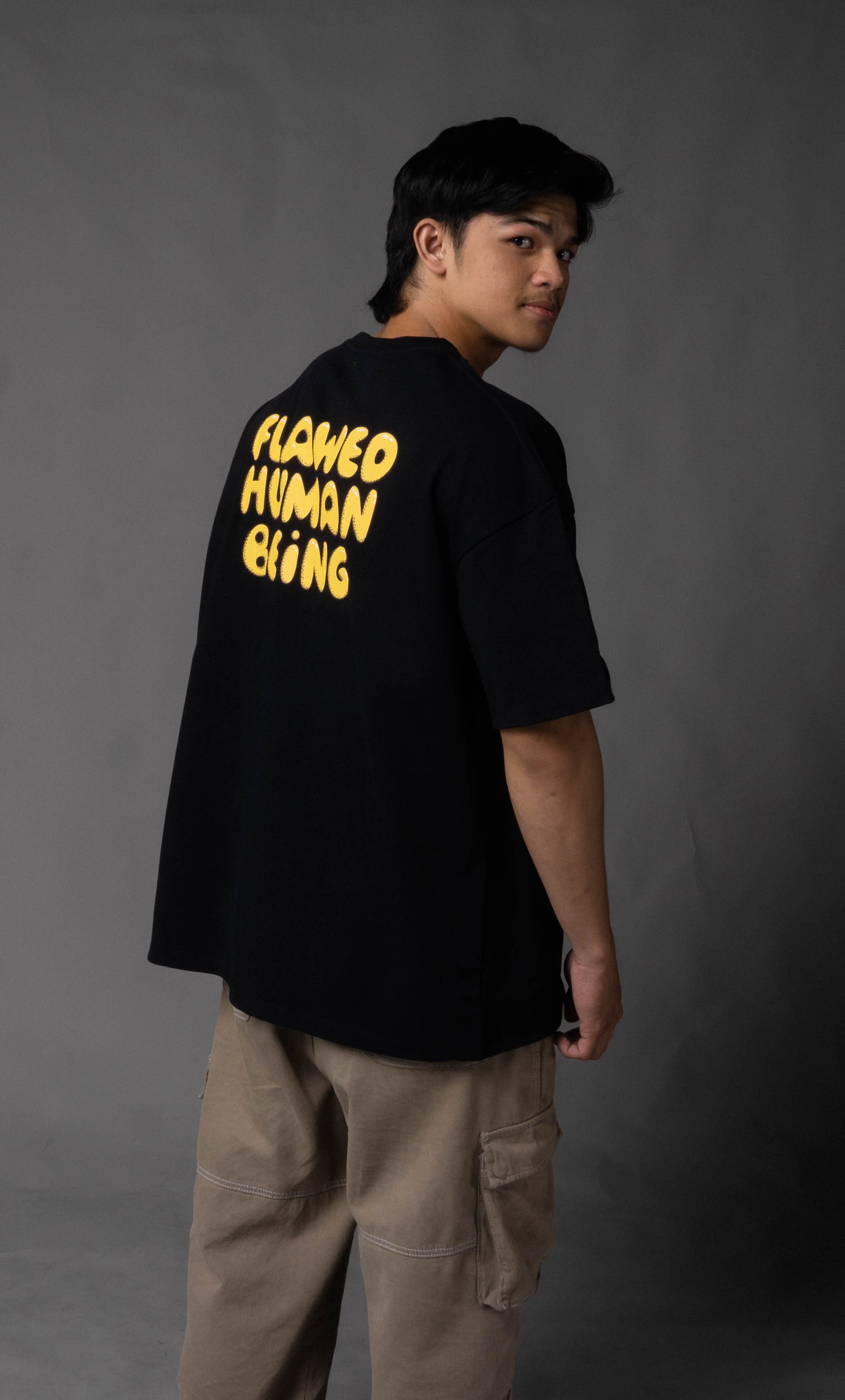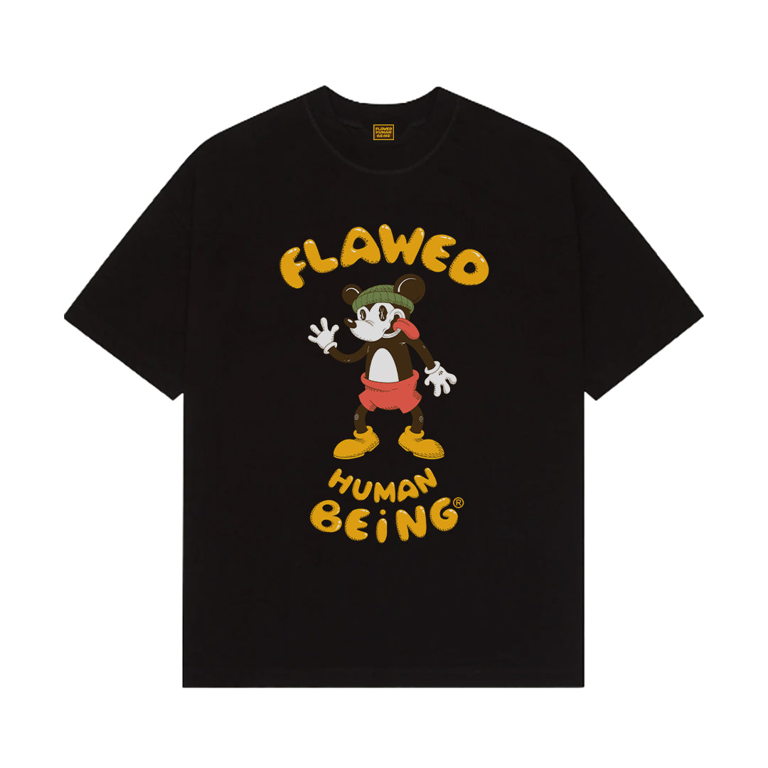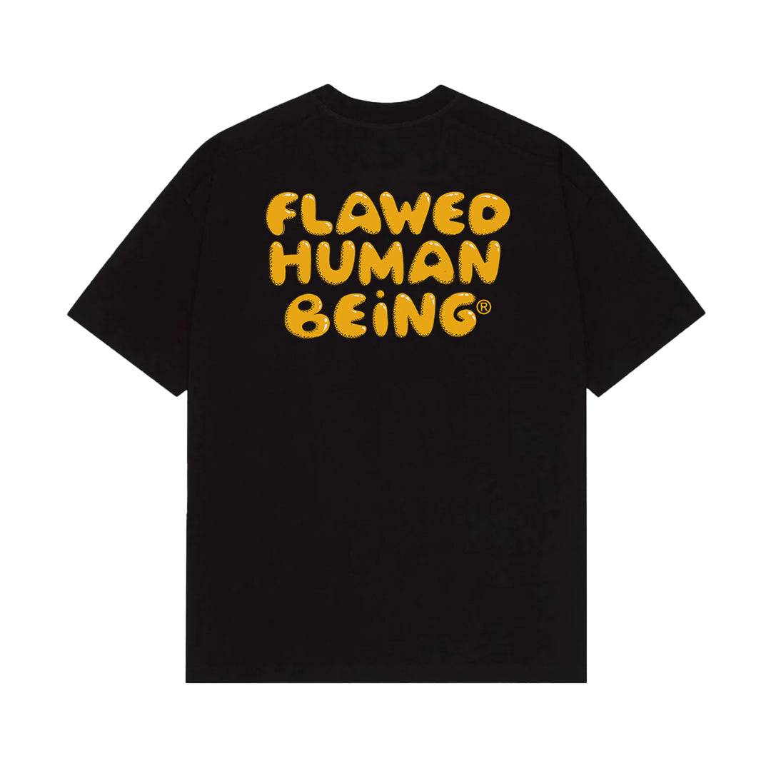 Custom-fit short sleeved tee-shirt features a ribbed neckline, with Flawed "Initial Decay" graphic printed at front and a bold typography logo at the back.